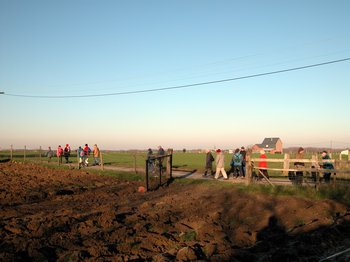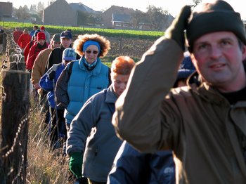 Enfin 14h et le départ pour le second circuit. Nous sommes 21 à suivre Luc à travers la campagne gelée régulièrement survolés par les avions qui viennent de décoller de Zaventem.